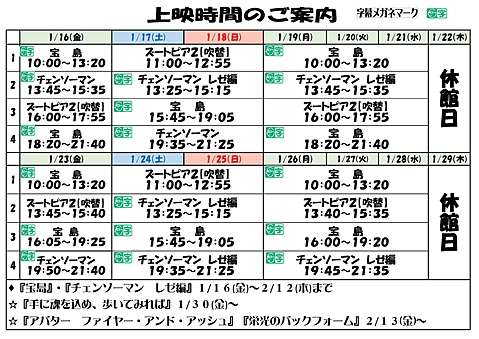 日付と作品名をご確認下さい。 ※スケジュール調整が行われる場合があります。 お出かけ前に、公式ホームページ(こちらのサイト)やSNSにて ご確認下さい。 ![]()