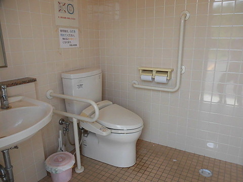 手すりの情報:着座して、左側に壁・L型手すり、右側に横棒固定手すり
