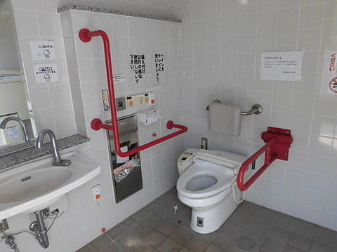 住所:平戸市紐差町森ノ木1034![]() 小便器2 − 和便器0 0 洋便器1 2 多目的:有 ベビーベット:有 ベビーチェア:有 駐車場:有(2台) 備考 ・駐車場は2台止められ、うち1台は障害者専用である。 ・紐差教会のそば。 ・西肥バス、平戸ふれあいバス「紐差」バス停のそば。 ![]() 手すりの情報:着座して、右側に壁・L型手すり、左側に横棒縦スライド手すり その他の設備:ベビーベット、ベビーチェア、ダストボックス 鏡:有(床から:82p、高さ:90p) 備考 地図 探索日:令和6年8月11日 |