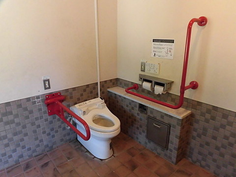 手すりの情報:着座して、左側に壁・L型手すり、右側に横棒縦スライド手すり