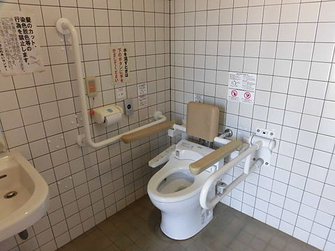 住所:平戸市紐差町森ノ木678-1![]() 小便器3 − 和便器1 1 洋便器1 1 多目的:有 ベビーベット:有 ベビーチェア:無 駐車場:有(58台) 備考 ・センター内には中部支所、公民館、永田記念図書館がある。 ・西肥バス、生月バス、平戸ふれあいバス「ふれあいセンター入口」バス停のそば。 ![]() 手すりの情報:着座して、右側に壁・L型手すり、左側に横棒縦スライド手すり その他の設備:ベビーベット 鏡:有(床から:79p、高さ:76p) 備考 ・上記の手すりの内側に両方縦スライドの手すりがある。 地図 探索日:令和6年8月11日 |