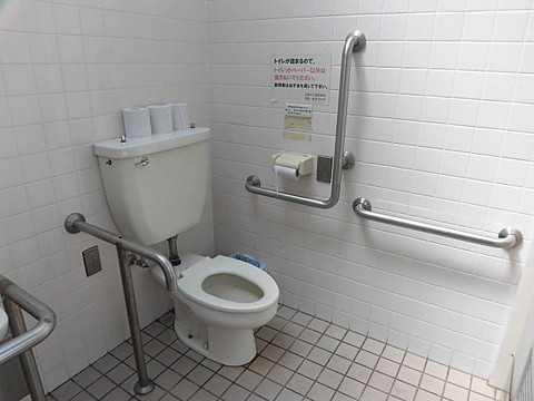 手すりの情報:着座して、左側に壁・L型手すり、右側に横棒固定手すり