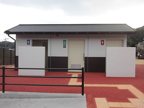 多目的:有(着座して、左側に壁・L型手すり、右側に横棒縦スライド手すり)