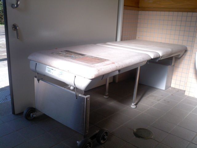 住所:雲仙市小浜町雲仙548−2![]() 多目的トイレ![]() ![]() 大人用シート![]() ![]() ・タイプ:パブリック折りたたみシート ・寸法(センチメートル):縦150、横60 ・利用体重(キログラム):100 オストメイト![]() ![]() ・タイプ:汚物流し型 ・温水機能:ナシ ・鏡:アリ(床から86p、高さ90p) ・その他の設備: ・備考:・パブリック折りたたみシートの説明文は2か国語(日本語、英語)になっている。 駐車場:有(31台)駐車場は31台止められ、うち2台は大型車、2台は障害者専用である。またバイク専用の駐輪場もある。 地図 |