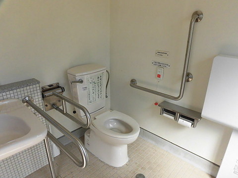 手すりの情報:着座して、左側に壁・L型手すり、右側に横棒縦スライド手すり