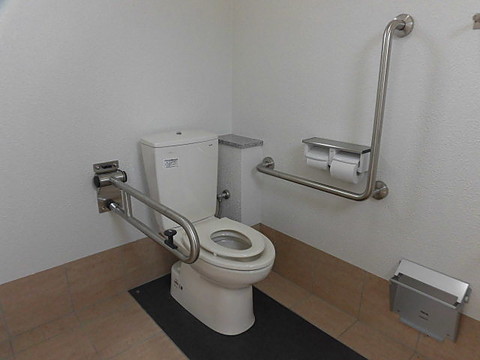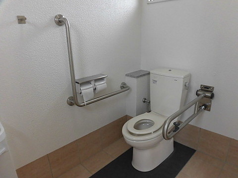住所:長崎市東町2219![]() 小便器1 − 和便器0 0 洋便器1 1 多目的:有 ベビーベット:無 ベビーチェア:有 駐車場:有(8台) 備考 ・駐車場は8台止められ、うち1台は障害者専用である。 ・駐輪場も5台分ある。 ・駐輪場からトイレまで26段の階段と緩やかなスロープがある。 男性用![]() ![]() 手すりの情報:着座して、右側に壁・L型手すり、左側に横棒縦スライド手すり その他の設備:ベビーチェア、子供用便座、小さなベンチ、フック 鏡:有※姿鏡(床から:40p、高さ:140p) 備考 ・多目的と洋便器が兼用になっている。 女性用![]() ![]() 手すりの情報:着座して、左側に壁・L型手すり、右側に横棒縦スライド手すり その他の設備:ベビーチェア、子供用便座、小さなベンチ、フック、ダストボックス 鏡:有※姿鏡(床から:40p、高さ:140p) 備考 ・多目的と洋便器が兼用になっている。 地図 探索日:令和6年4月2日 |