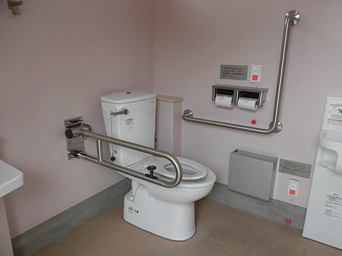 手すりの情報:着座して、左側に壁・L型手すり、右側に横棒縦スライド手すり