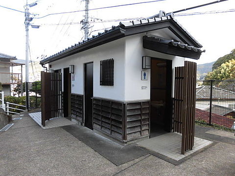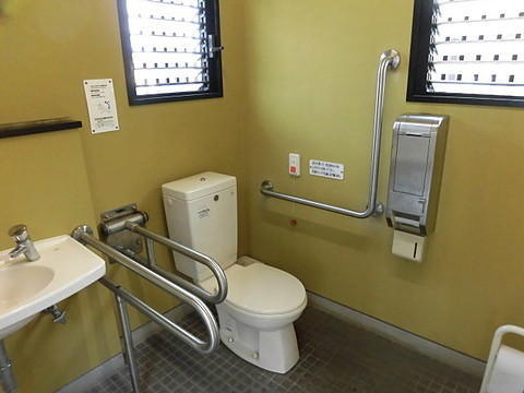 手すりの情報:着座して、左側に壁・L型手すり、右側に横棒縦スライド手すり