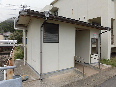 手すりの情報:着座して、左側に壁・L型手すり、右側に横棒横スライド手すり
