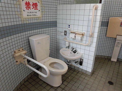 手すりの情報:着座して、左側に壁・L型手すり、右側に横棒縦スライド手すり