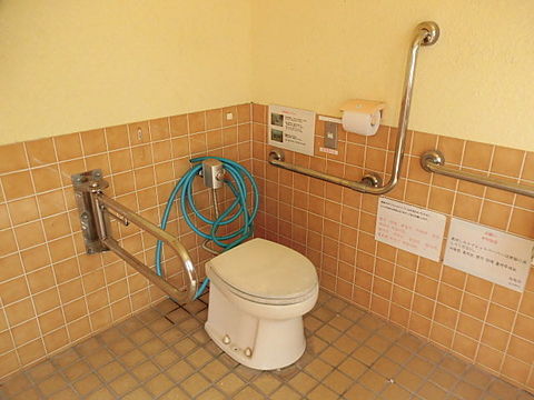 手すりの情報:着座して、左側に壁・L型手すり、右側に横棒横スライド手すり