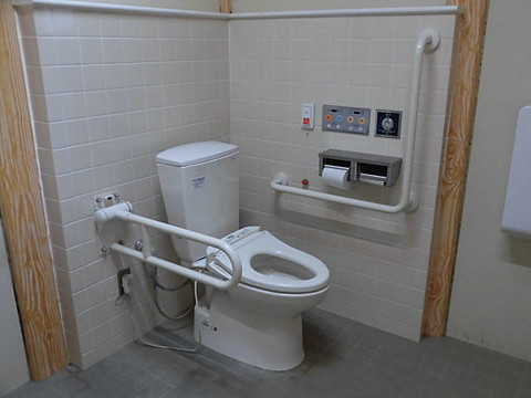 手すりの情報:着座して、左側に壁・L型手すり、右側に横棒縦スライド手すり