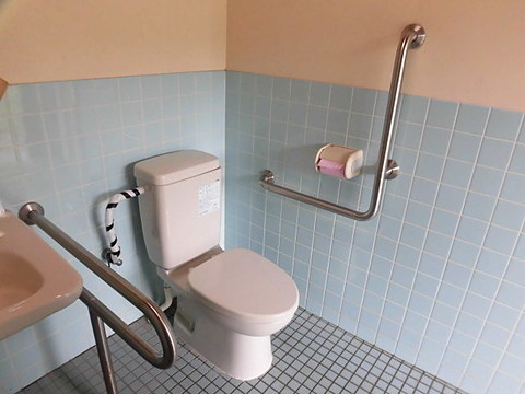 ・横棒固定手すりは手洗い場と兼用になっている。