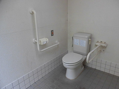 手すりの情報:着座して、右側に壁・L型手すり、左側に横棒縦スライド手すり