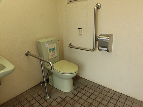 多目的:有(着座して、左側に壁・L型手すり、右側に横棒固定手すり)