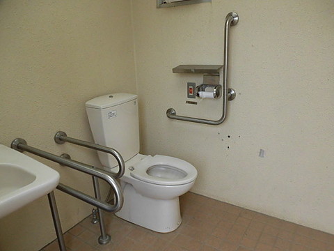 手すりの情報:着座して、左側に壁・L型手すり、右側に横棒固定手すり