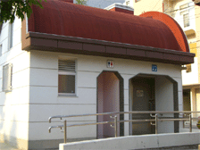 多目的:有(着座して、左側に壁・L型手すり、右側に横棒固定手すり)