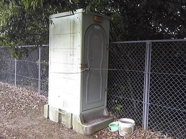 ・「使用禁止」と書かれ、ロープで縛られドアが開閉できない。