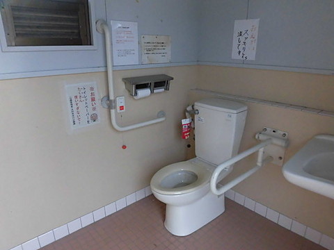 手すりの情報:着座して、右側に壁・L型手すり、左側に横棒縦スライド手すり