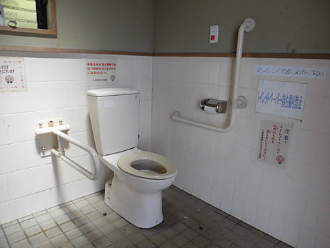 手すりの情報:着座して、左側に壁・L型手すり、右側に横棒縦スライド手すり