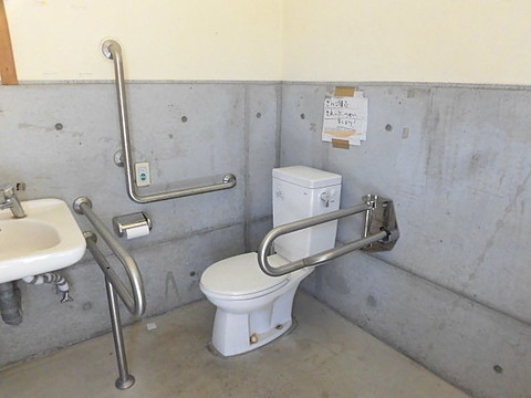 手すりの情報:着座して、右側に壁・L型手すり、左側に横棒横スライド手すり