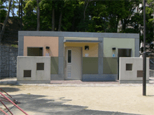 多目的:有(着座して、右側に壁・L型手すり、左側に横棒横スライド手すり)