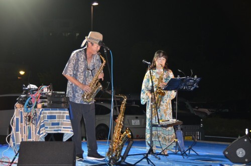 ステージイベントも好評で、「Soul Wave(上の写真)」「たなかみどり」篝火点火に合わせたサックス演奏「ジミー中山&安生(下の写真)」も百八体の雰囲気を盛り上げてくれました。