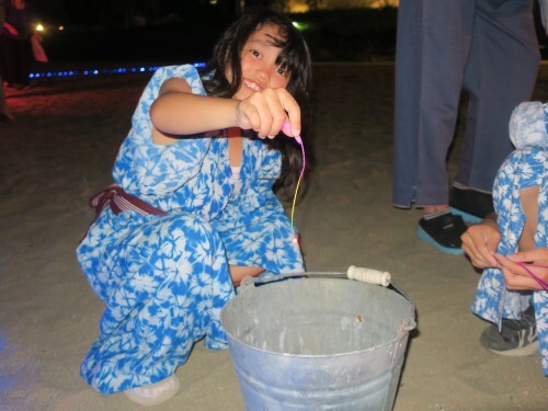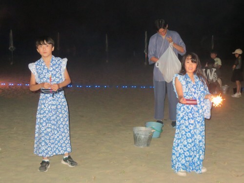 今日の花火広場の最初の利用者は、ビーチから。噴水型の花火持参しましたが、受付で小さな花火を買ってくれました。宿泊ではなく帰途の途中に寄ってくれました。