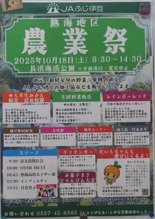 9/18(木)午後4時半頃、JAの職員さんが10/18(土)に開催予定の2025熱海地区農業祭のチラシとポスターを届けてくれました。