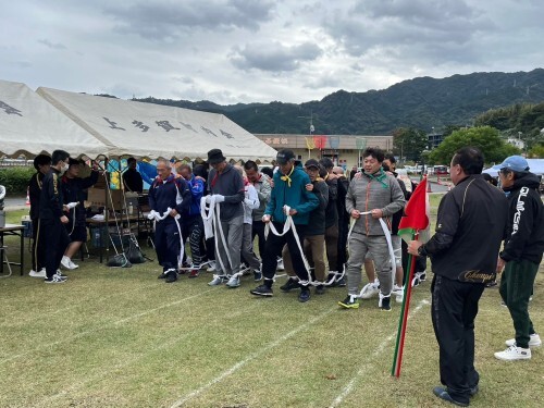 参加者は当日ガンバレば良いのですが、役員さんは前日から会場のコースの白線を引いたり、組ごとの場所を表示したりと準備をしなければなりません。