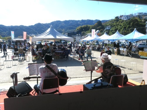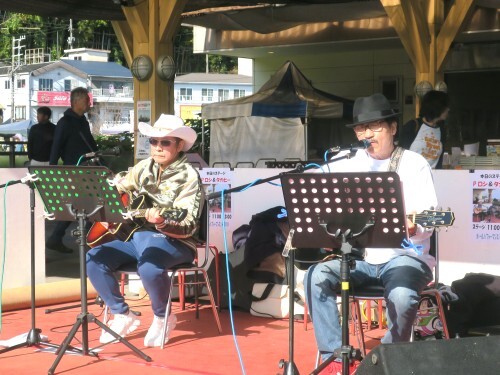 久しぶりに週末が好天気の霜月(後期)特設市、初日のメインイベントは「Pロシ&タカヒー」のライブステージ。