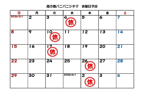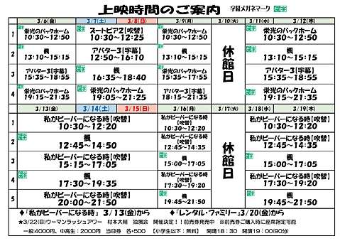 日付と作品名をご確認下さい。 ※スケジュール調整が行われる場合があります。 お出かけ前に、公式ホームページ(こちらのサイト)やSNSにて ご確認下さい。 ![]()
