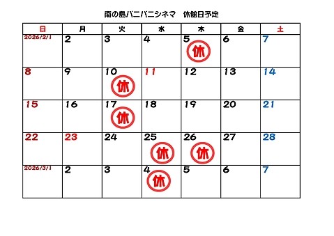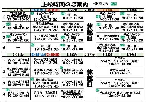 日付と作品名をご確認下さい。 ※スケジュール調整が行われる場合があります。 お出かけ前に、公式ホームページ(こちらのサイト)やSNSにて ご確認下さい。 ![]()
