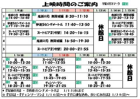 日付と作品名をご確認下さい。 ※スケジュール調整が行われる場合があります。 お出かけ前に、公式ホームページ(こちらのサイト)やSNSにて ご確認下さい。 ![]()